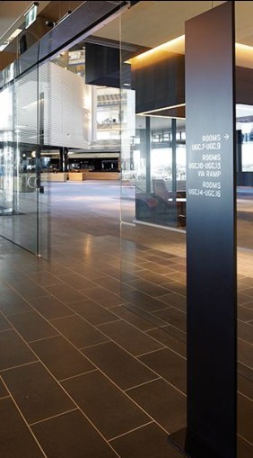 黑白配兩種色彩組合形成的企業戶外立式指示標識牌,搭配企業裝飾風格,突出高雅、大氣的形象氣勢,給人的感覺就是很高檔的企業樓層建筑,專業的企業VI設計。