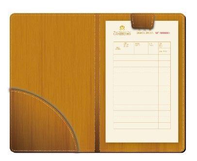 看到這個模板了嗎?這是一個酒店點菜夾模板:這個點菜夾設計看起來很高檔很別致,它的制作色彩是依照設計樣本制作的,規格是140X230mm,所用材質是牛皮,工藝上是采用壓紋制作形成的。
