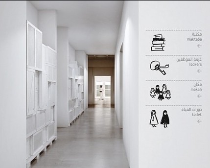 這款墻貼式標識的設計是屬于圖形功能說明形式的指示標識,像在企業當中的一些區域里設計這種圖形功能標識說明,清晰、明了、直觀,人們可直接通過視覺明白標識的說明區域的用處。