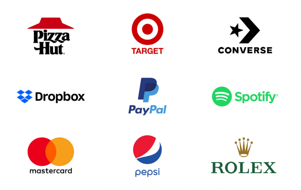 組合商標(biāo)標(biāo)識(shí)的示例包括:必勝客、塔吉特、匡威、Dropbox、貝寶、Spotify、萬(wàn)事達(dá)卡、百事可樂(lè)、勞力士。