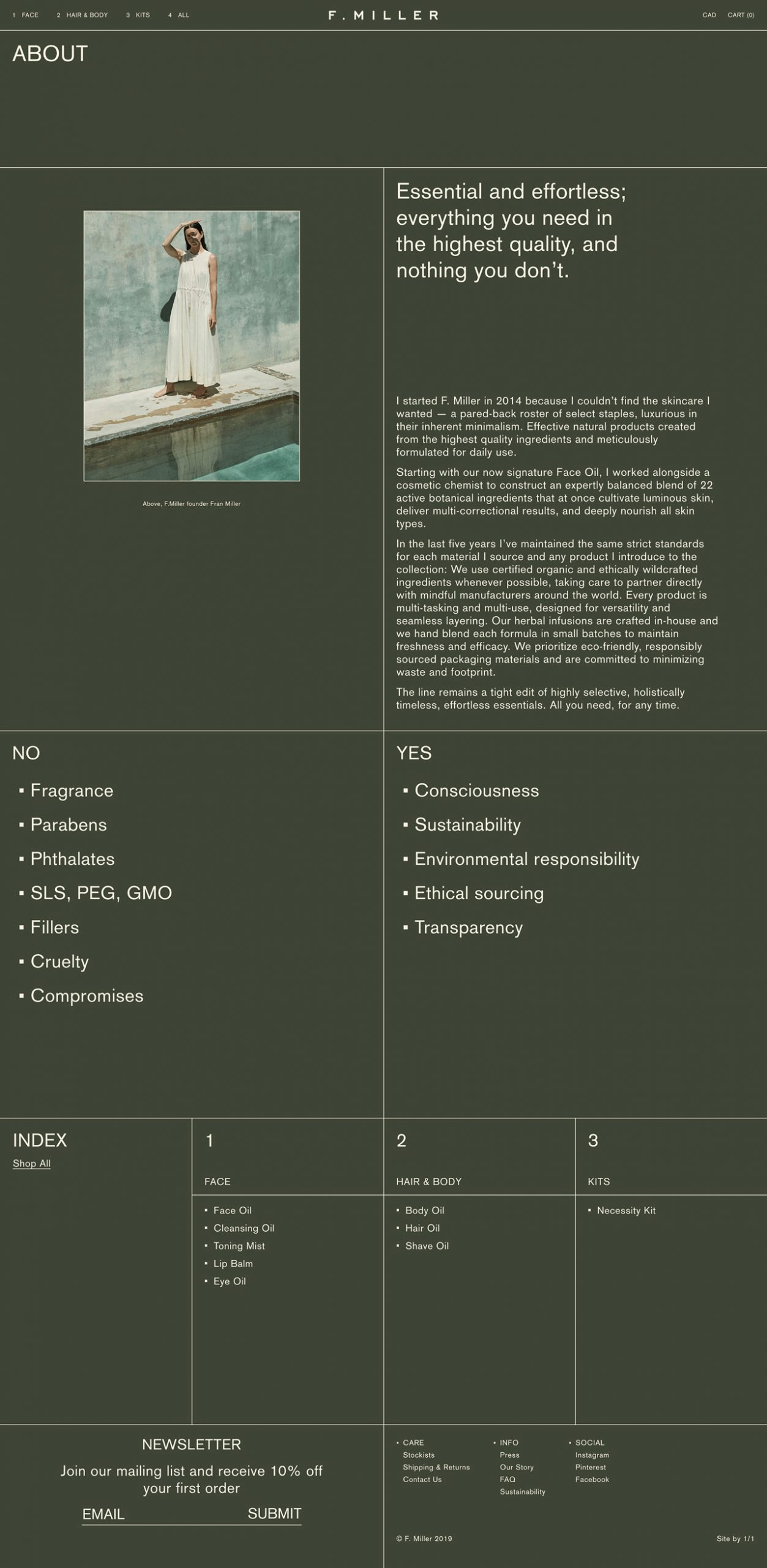 The skin care brand VI designed the brand image, and F.MILLER SKINCARE created the exquisite skin care brand VI design image, including the skin care brand XS packaging and website. Develop the exquisite skin care brand VI logo. Including the development of clean, modern packaging series and the brand's e-commerce website.