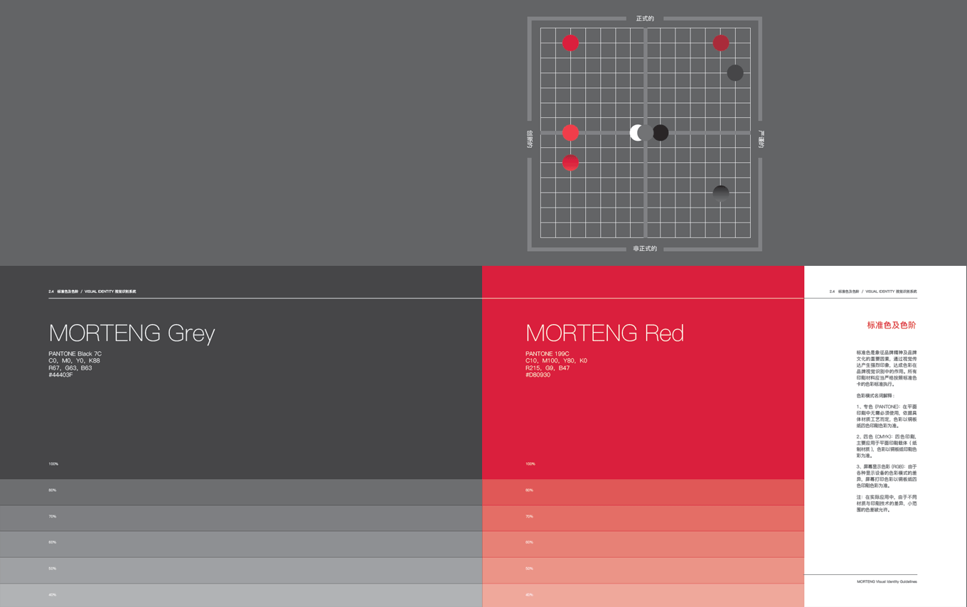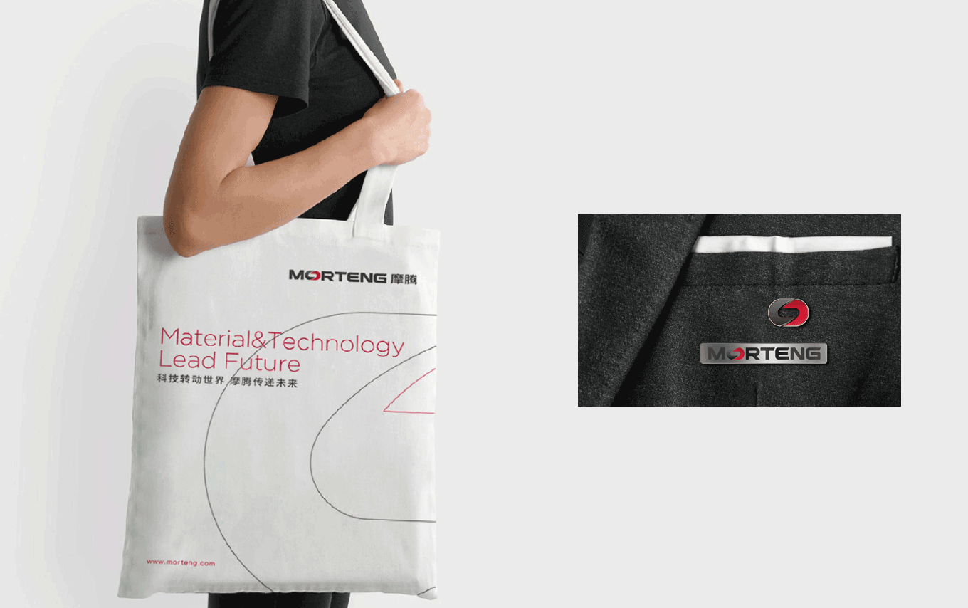 MORTENG 英文字體標(biāo)識,將字母“O” 作為主要識別點,形成了一個無限循環(huán)轉(zhuǎn)動的環(huán)形,其不僅具有摩騰科技的產(chǎn)品屬性——象征滑環(huán)、碳刷等產(chǎn)品的運作特性;其次,圖標(biāo)的負(fù)形也巧妙地形成了“能源符號” 的圖形感,象征著摩騰在風(fēng)電、傳動、線纜等能源科技領(lǐng)域所具有的“無限能量”。在顏色上也選用“能量感” 極強(qiáng)的紅色作為主要識別色,使摩騰品牌在行業(yè)領(lǐng)域中脫穎而出。